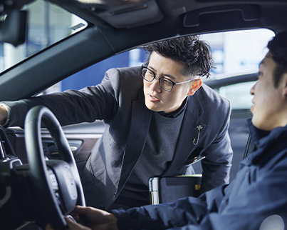 ご来店されたお客さまからのご要望を営業やエンジニアへ伝達し、お客さまのカーライフをお手伝いします。
