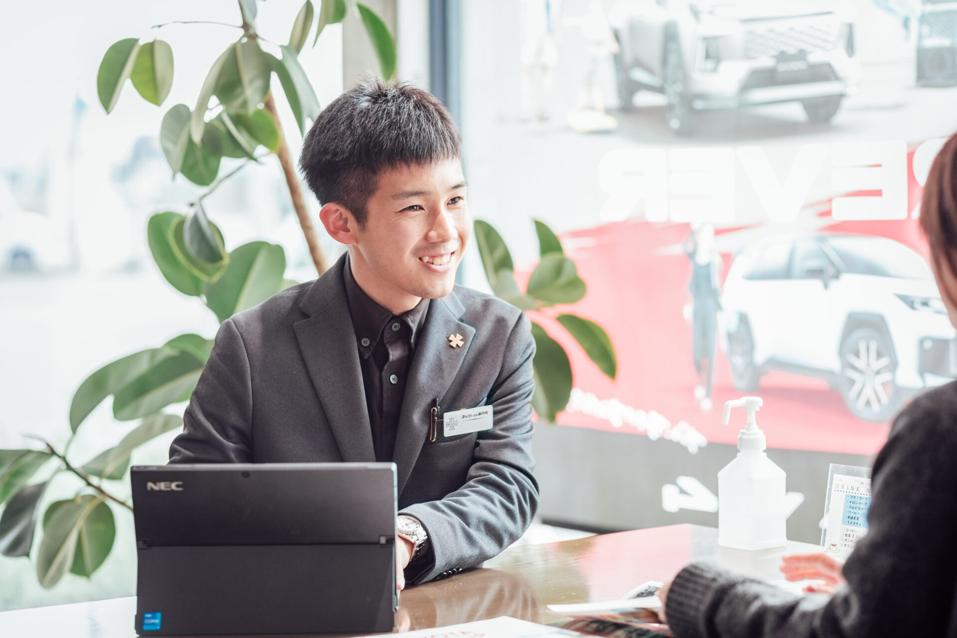 新人の研修期間に「受付・営業のアシスタント」をしておりました。ご商談の同席やご一緒に試乗など、多くの経験をさせていただきました。